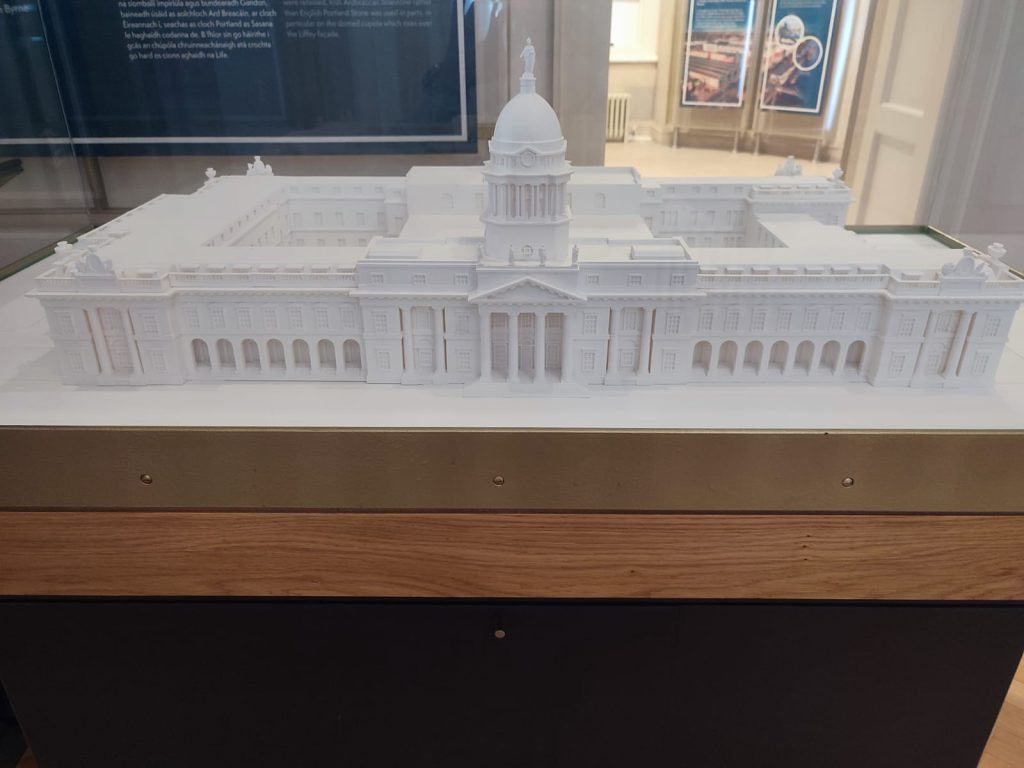 The tour included 3D phisical models of the building and interactive multimedia displays, featuring a captivating digital map that compared Dublin’s city center before and after the Custom House’s construction. These visuals made us understand more easily the building’s history. The exhibits also showcased short films, original documents, and personal accounts from that time, making the experience even more engaging.